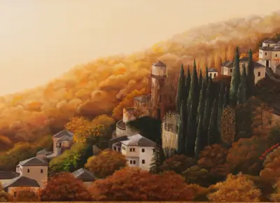 has been painting since 1980. She specialized in techniques of watercolor, acrylic and oil painting with a wide thematic breadth. It draws its inspiration from Greek traditional architecture and the Greek landscape.
